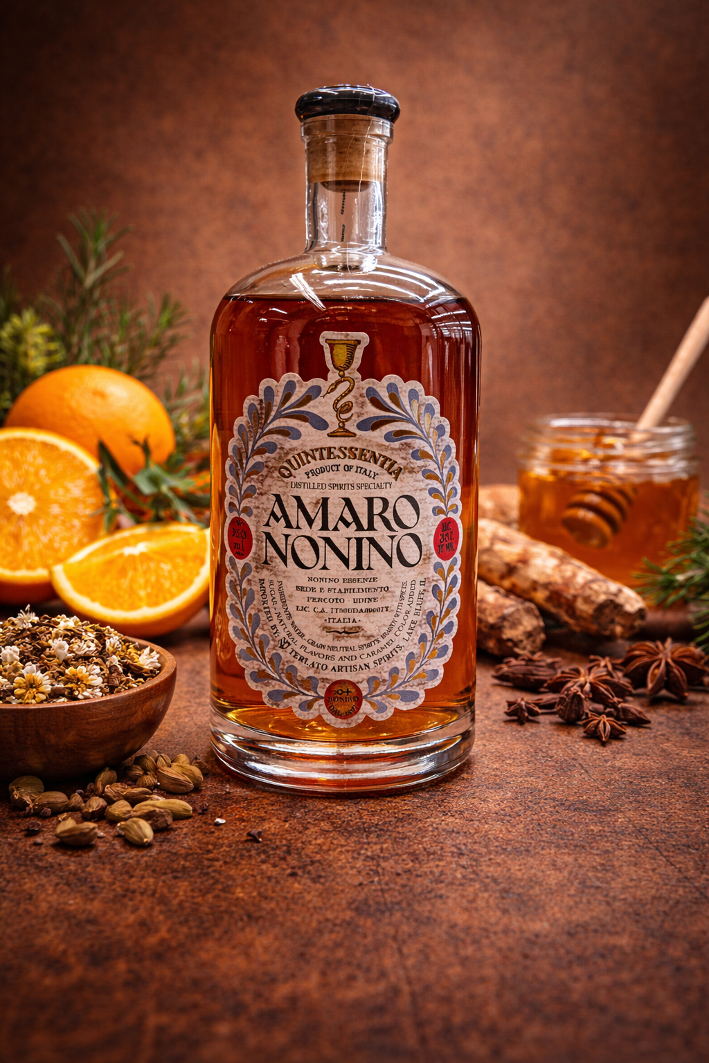 Amaro Nonino Quintessentia is a refined Italian amaro with layered herbal bitterness, orange/citrus notes and a smooth, balanced sweetness. Serve as a digestif, over ice with an orange twist, or in stirred cocktails.