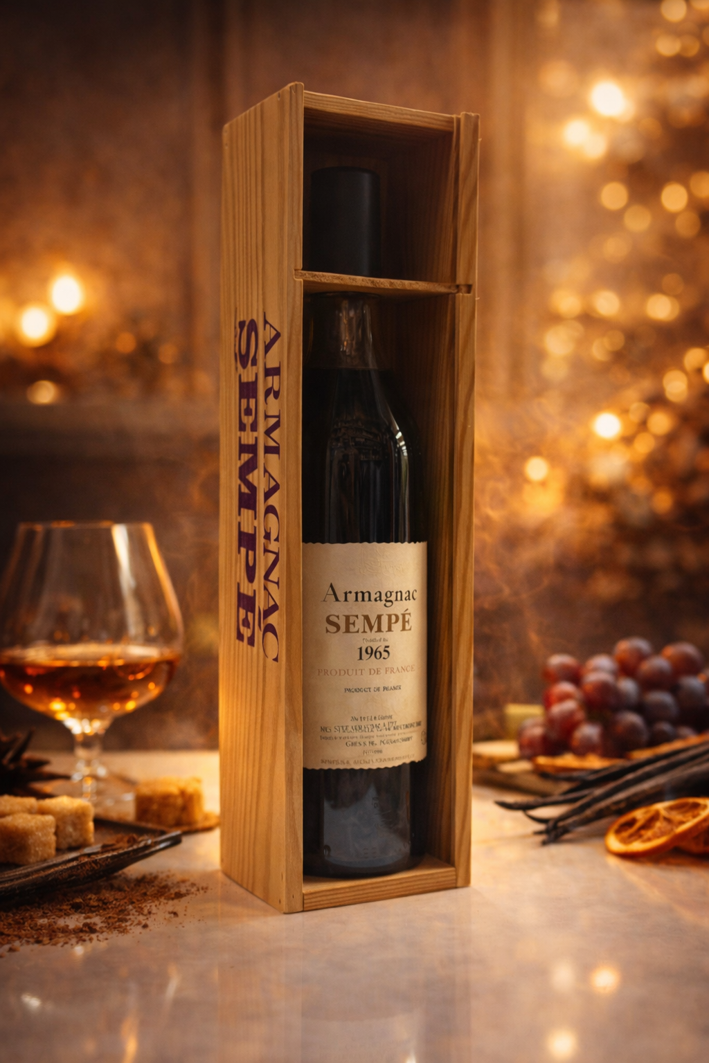 Sempé 1965 is a beautifully matured vintage Armagnac from France, offering classic aged-brandy character. Aromas of dried plum, fig, tobacco, and gentle oak lead to a rich palate with long, warming spice and rancio—an excellent special-occasion bottle.