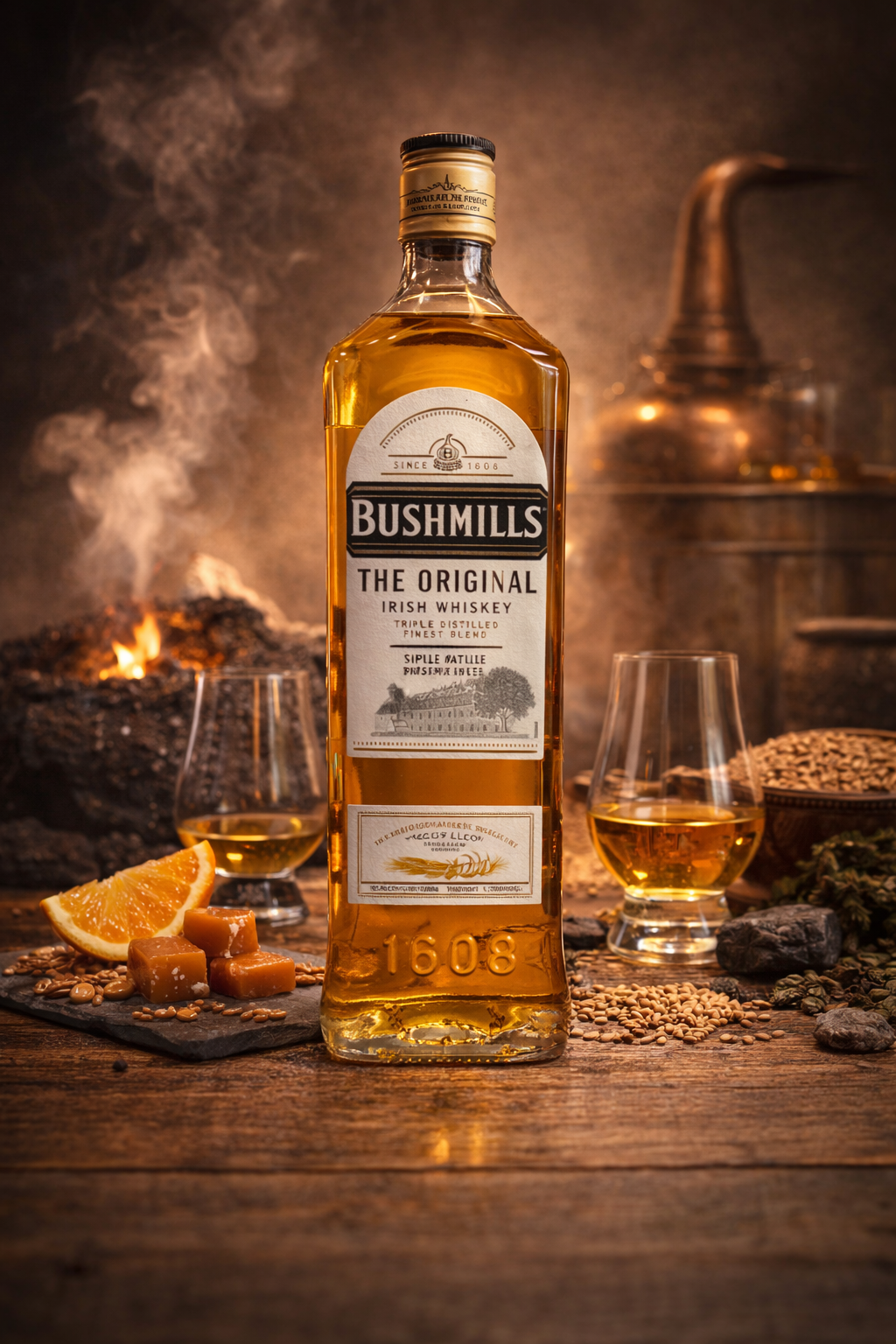 Bushmills Irish Whiskey 1L is a premium Irish whiskey crafted in Ireland, triple distilled for exceptional smoothness and character. Enjoy neat, on the rocks, or in classic whiskey cocktails.