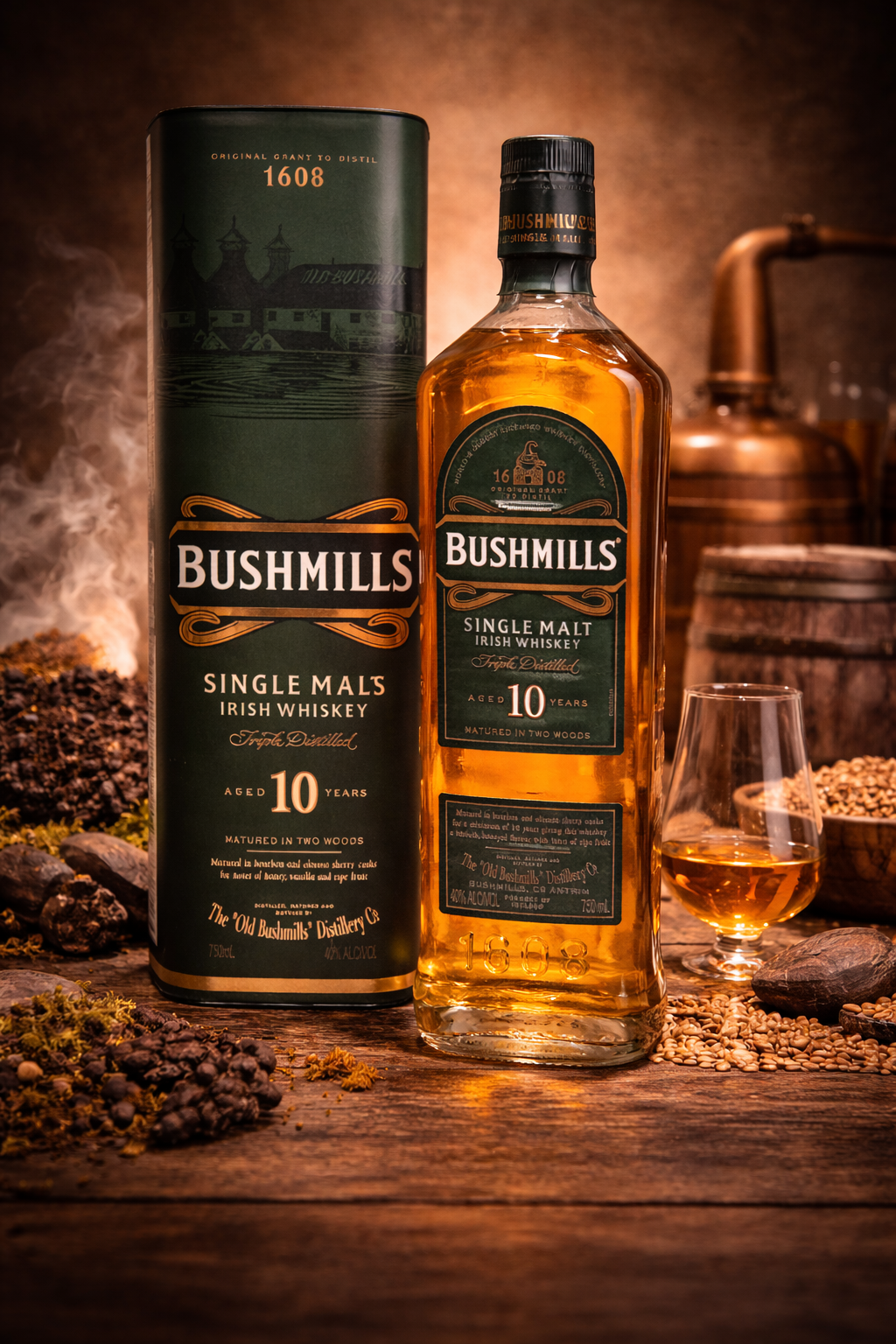 Bushmills Single Malt 10 Year is a premium Irish whiskey crafted in Ireland, triple distilled for exceptional smoothness and character. Enjoy neat, on the rocks, or in classic whiskey cocktails.