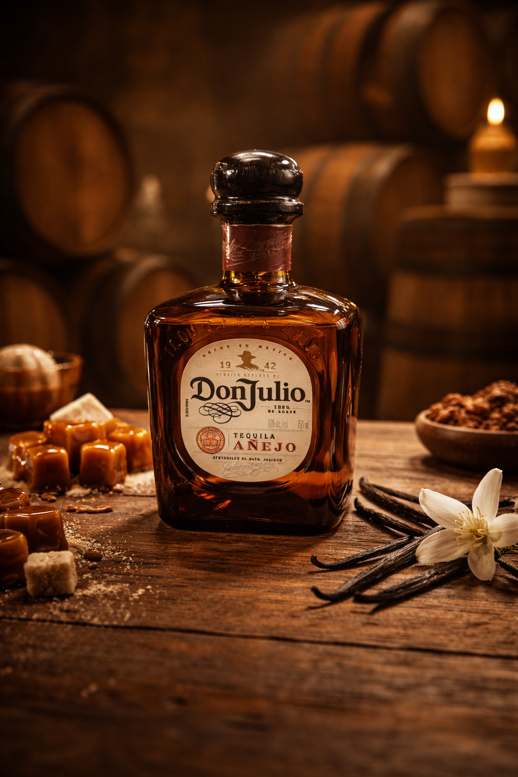 Don Julio Añejo is a premium 100% Blue Weber Agave tequila from Jalisco, Mexico, aged in oak barrels to create a tequila that’s smooth, rich, and elegant. It has a beautiful balance of cooked agave, vanilla, caramel, and toasted oak, making it one of the most popular añejo tequilas for sipping.