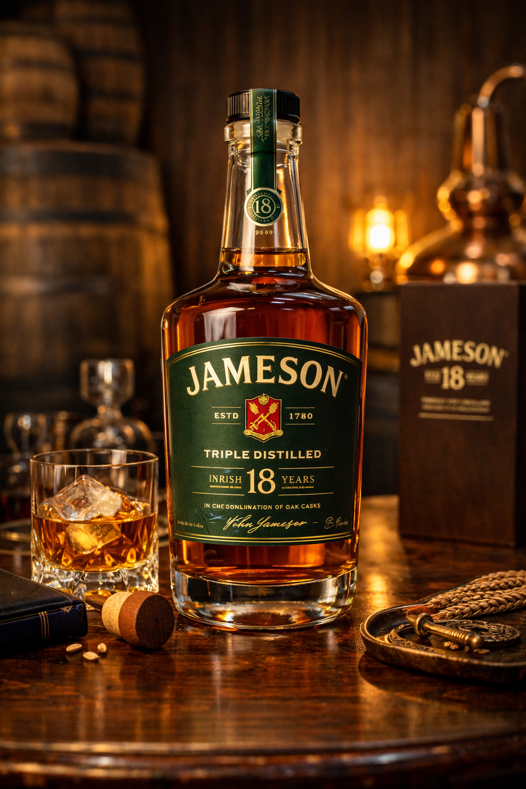 Jameson 18 Year is a premium Irish whiskey crafted in Ireland, triple distilled for exceptional smoothness and character. Enjoy neat, on the rocks, or in classic whiskey cocktails.