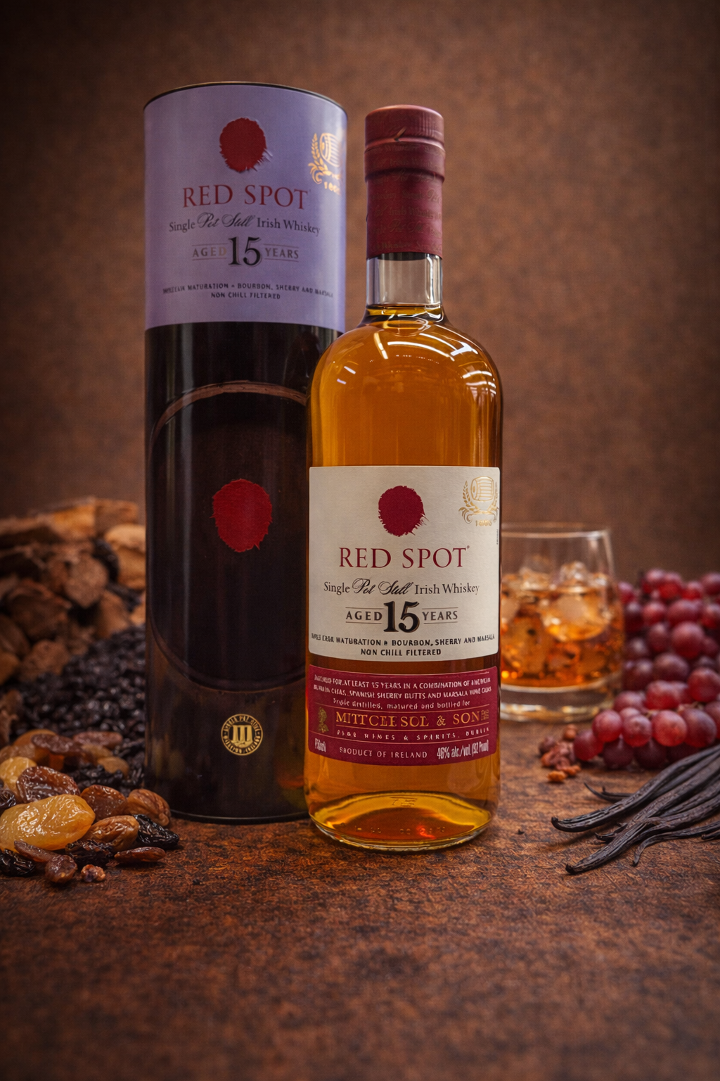 Red Spot 15 Year is a premium Irish whiskey crafted in Ireland, triple distilled for exceptional smoothness and character. Enjoy neat, on the rocks, or in classic whiskey cocktails.