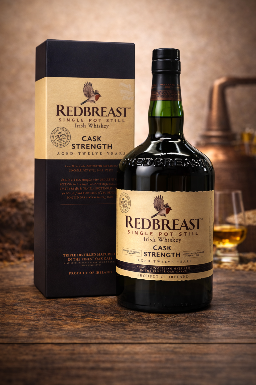 Redbreast Cask Strength is a premium Irish whiskey crafted in Ireland, triple distilled for exceptional smoothness and character. Enjoy neat, on the rocks, or in classic whiskey cocktails.