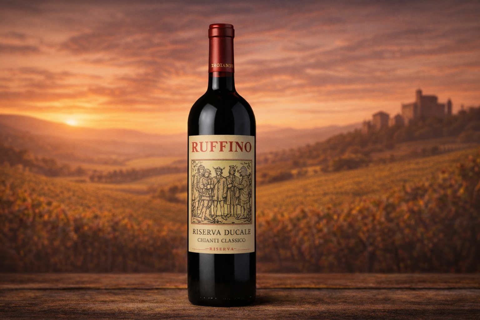 Ruffino Riserva Ducale offers rich aromas, medium body, and a smooth, approachable finish. Perfect with pasta, grilled meats, and cheeses.