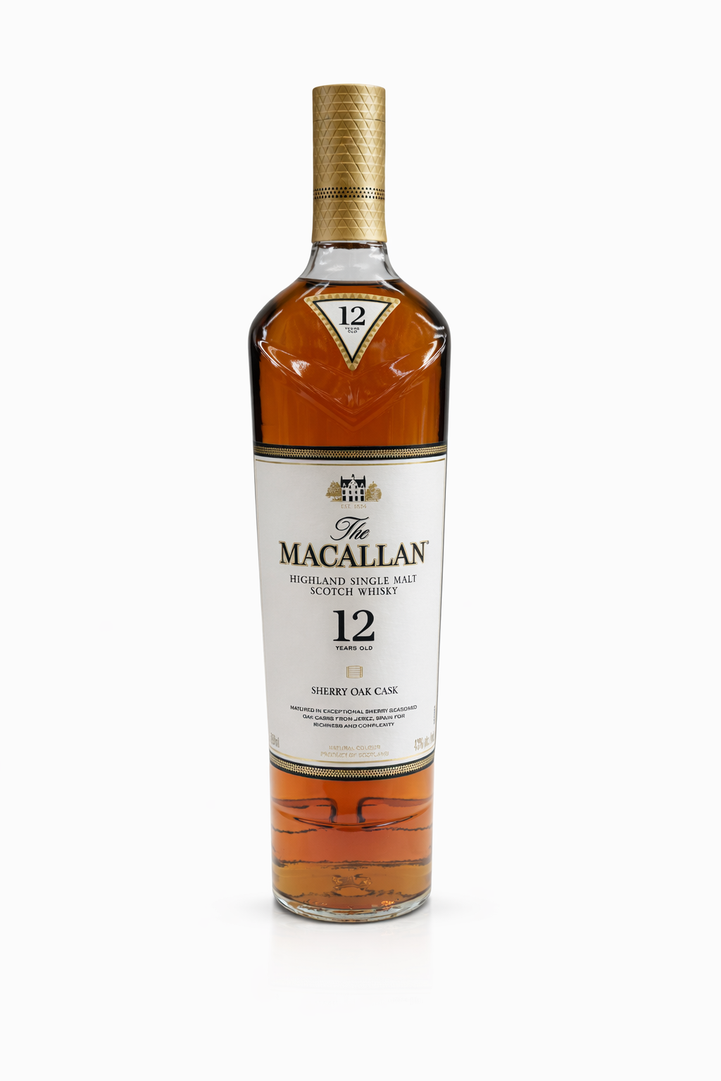 Premium Speyside single malt aged in sherry casks. Rich dried fruit, raisin, vanilla, and oak spice with a smooth, long finish.