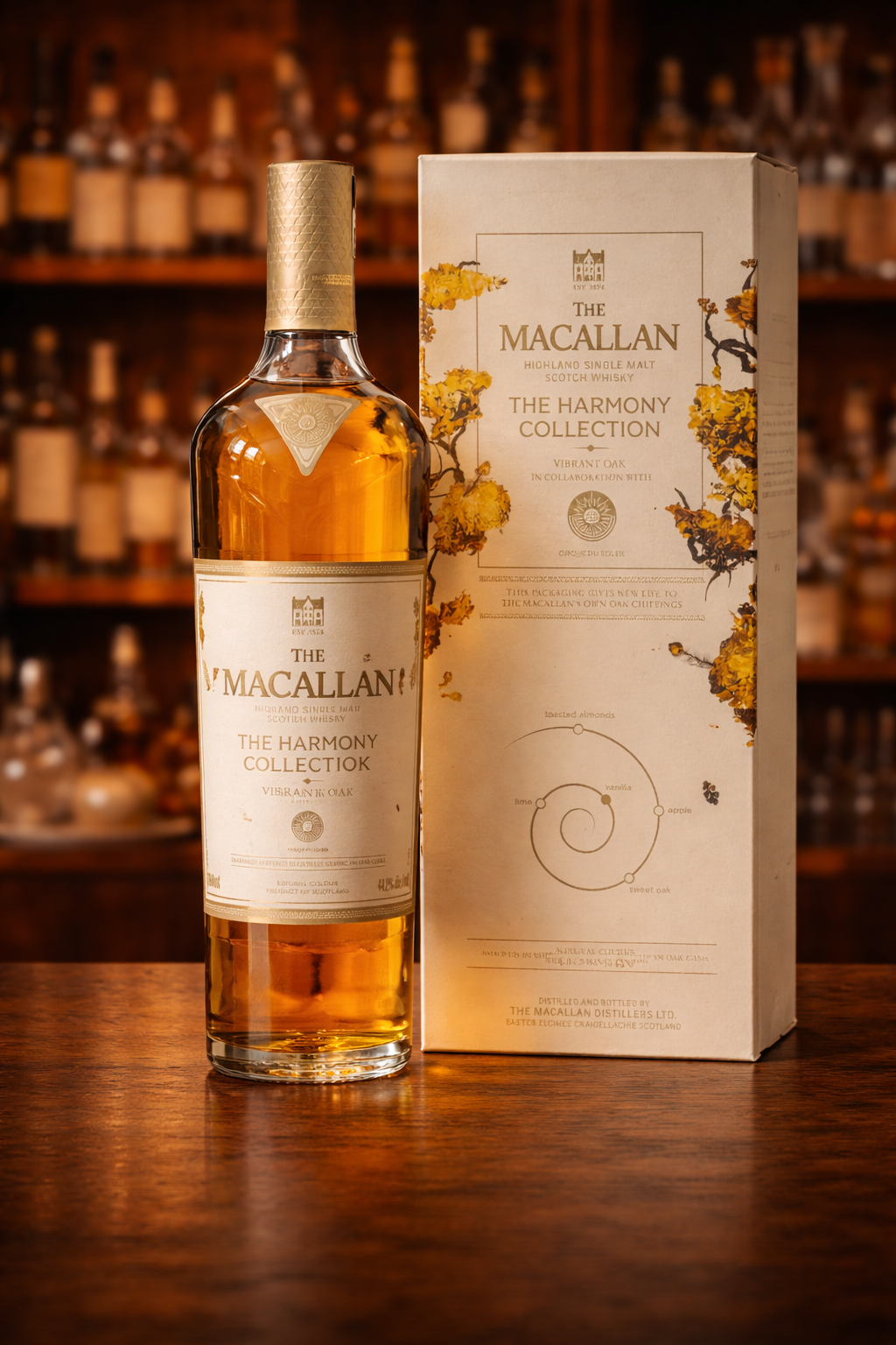 The Macallan Harmony Collection Vibrant Oak is a premium Scotch whisky selected for collectors and special-occasion pours—crafted to showcase mature cask character, layered aroma, and a long, elegant finish.